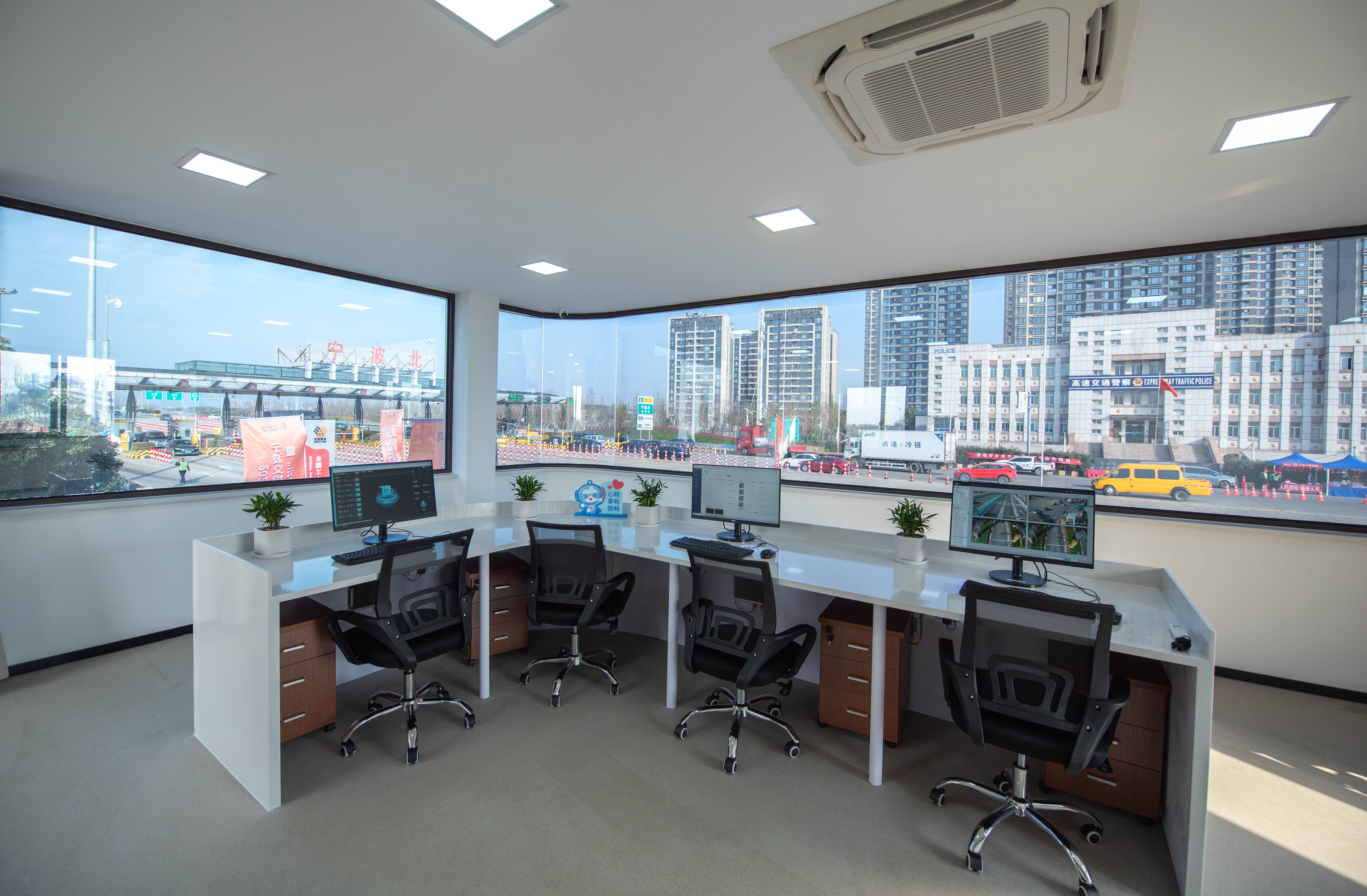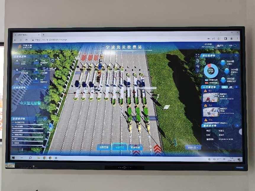 无法扣费抬杆、对收费有疑问、需要使用现金缴费……车辆在高速入口遇到通行难题怎么办?这就不得不提到在收费站一侧二层小楼里的“智云亭”。在此,工作人员可以在云端通过实时数据和图像传输,与车道内的车辆司乘人员进行交互。一个云端收费员可以管理多条车道,通过图像远程完成车牌录入,解决问题放行车辆。