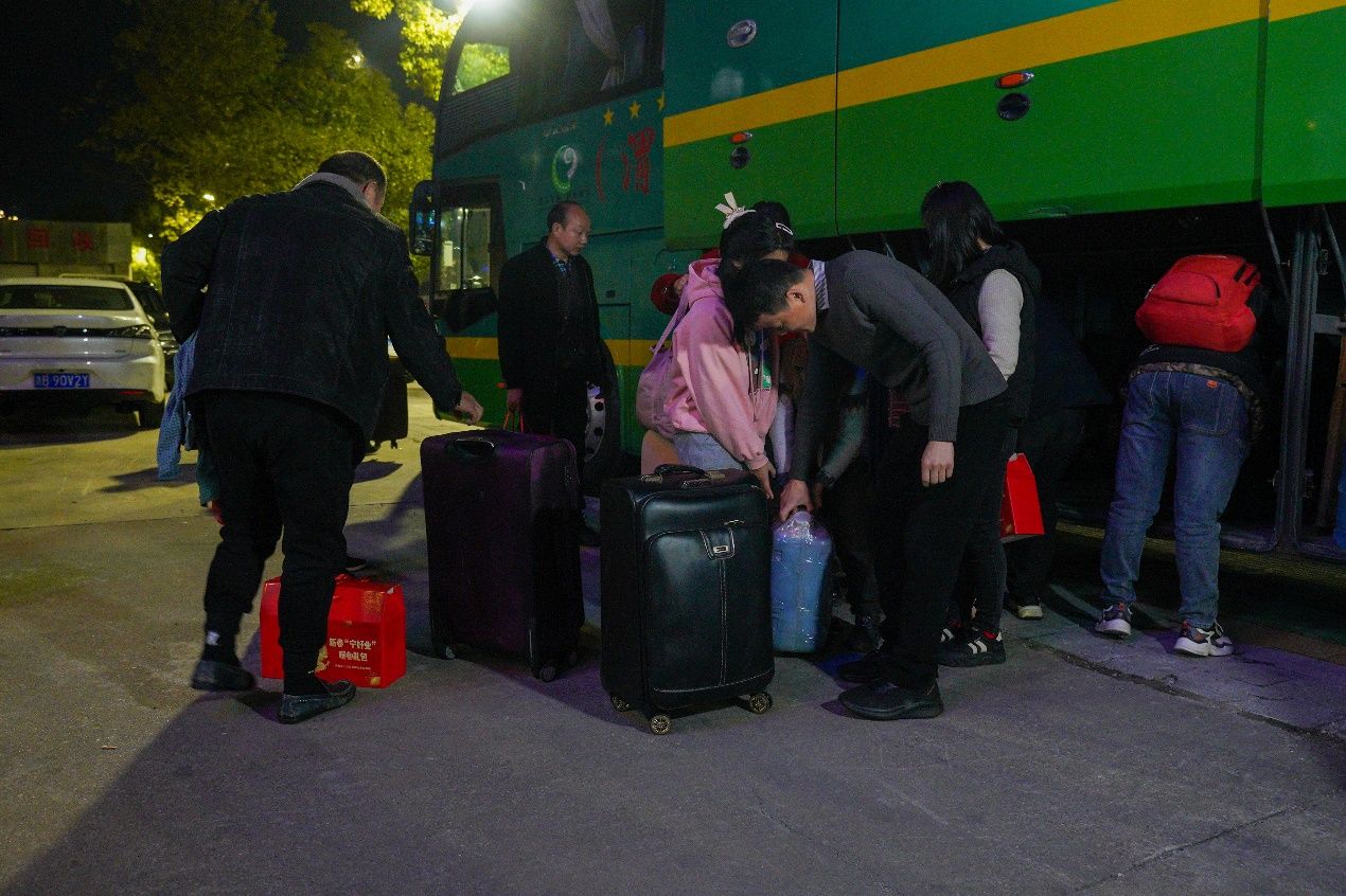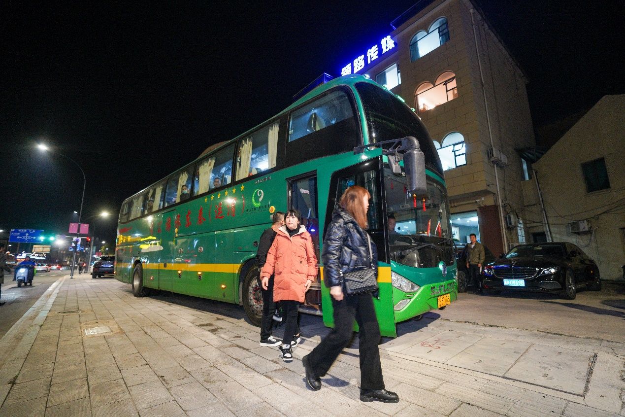 2月18日晚7点,历经1500多公里、近个30小时的车程,45名陕西安康务工人员乘坐的返岗直通车,抵达宁海县梅林街道领路直聘零工驿站。