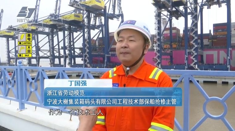 浙江省劳动模范 宁波大榭集装箱码头有限公司工程技术部保船抢修主管 丁国强:我是一名码头机械设备维修员,在公司主要负责桥吊、龙门吊,场地的堆高机、正面吊 叉车等设备的应急抢修。