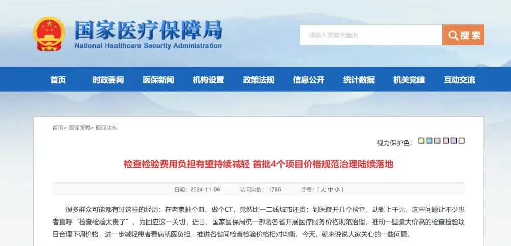 国家医保局最新消息显示,截至11月1日,全国31个省份均已发文下调项目价格,其中上海、江西、青海等省份已率先执行。初步测算,单个项目平均降价超40元,直接减轻了患者和医保基金的负担。