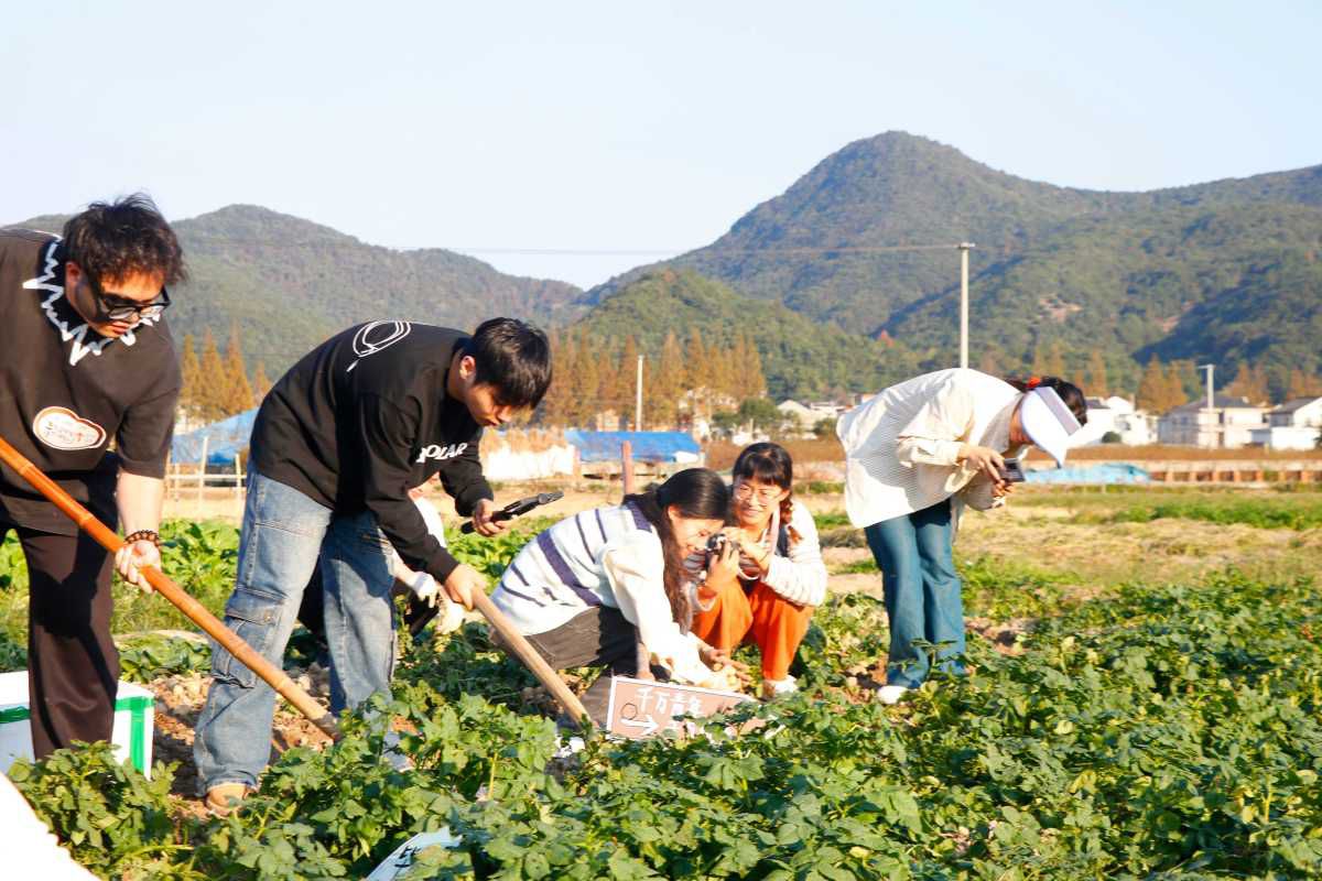 李泽林和同学们在土豆村体验挖土豆。(宁海宣传部供图)