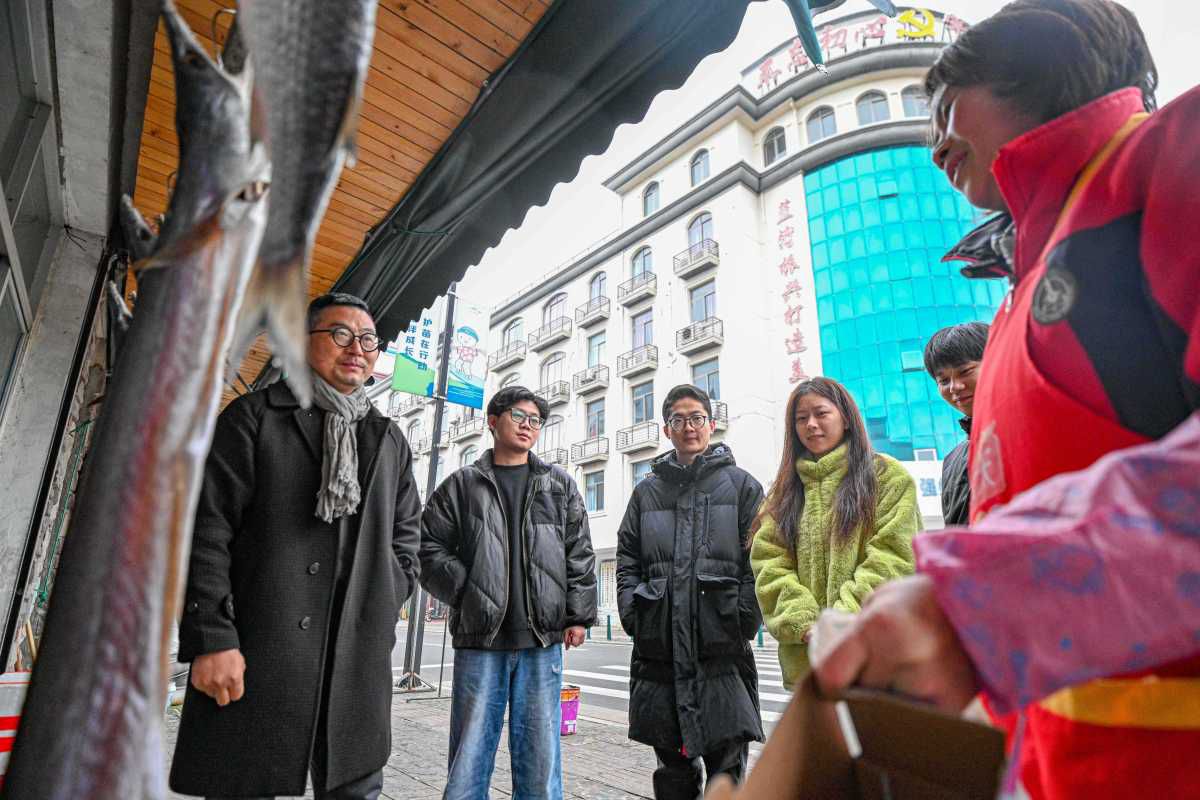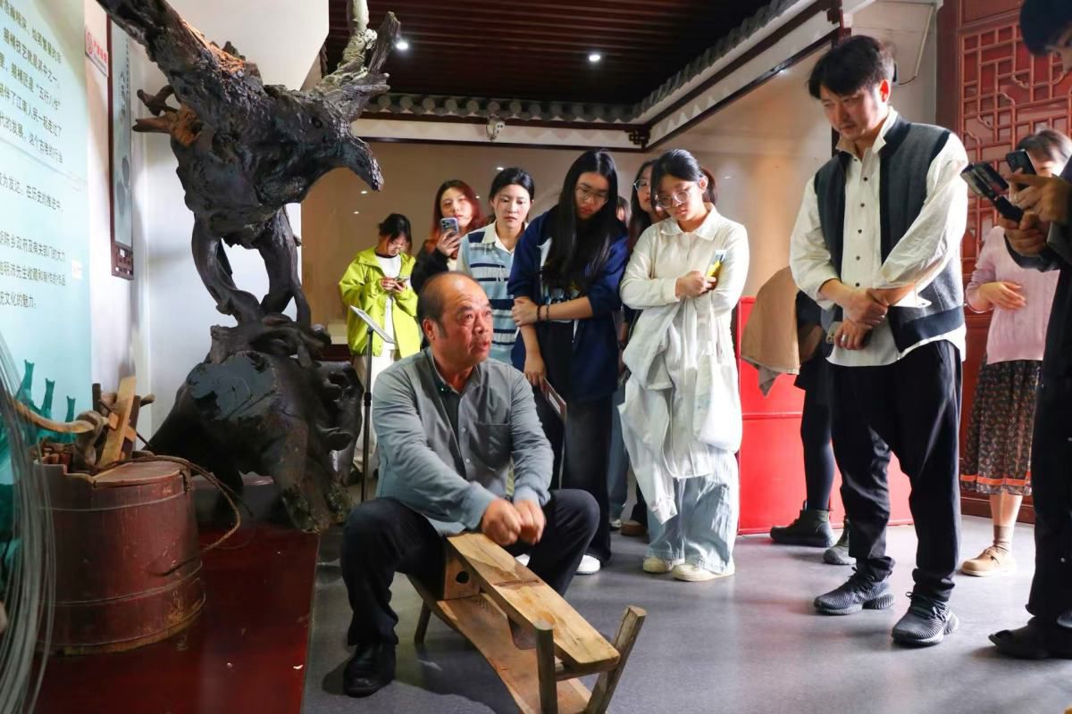 参与联合毕业设计的大学生和高校导师走进宁海强蛟镇进行风鳗调研。(王嘉彬摄)