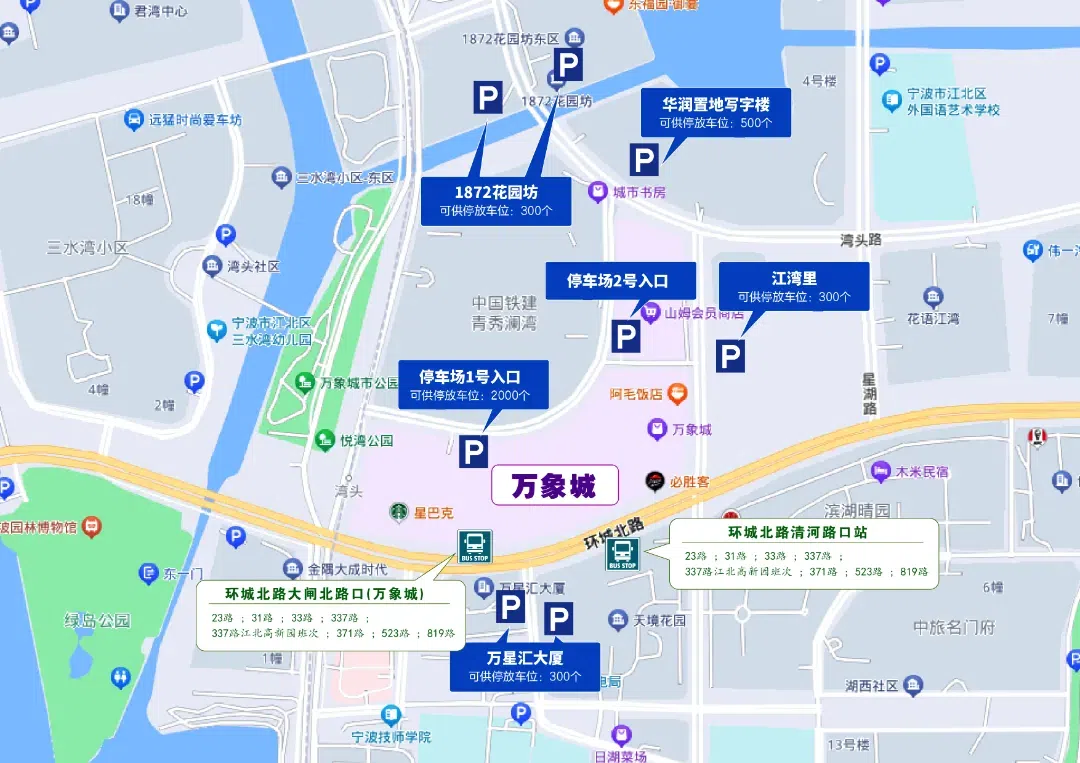 预计20:00-次日1:00的江北老外滩、万象城、来福士等主要商圈和慈城古镇,会出现大流量情况,蜀黍已经收集好了以上区域的停车指南。