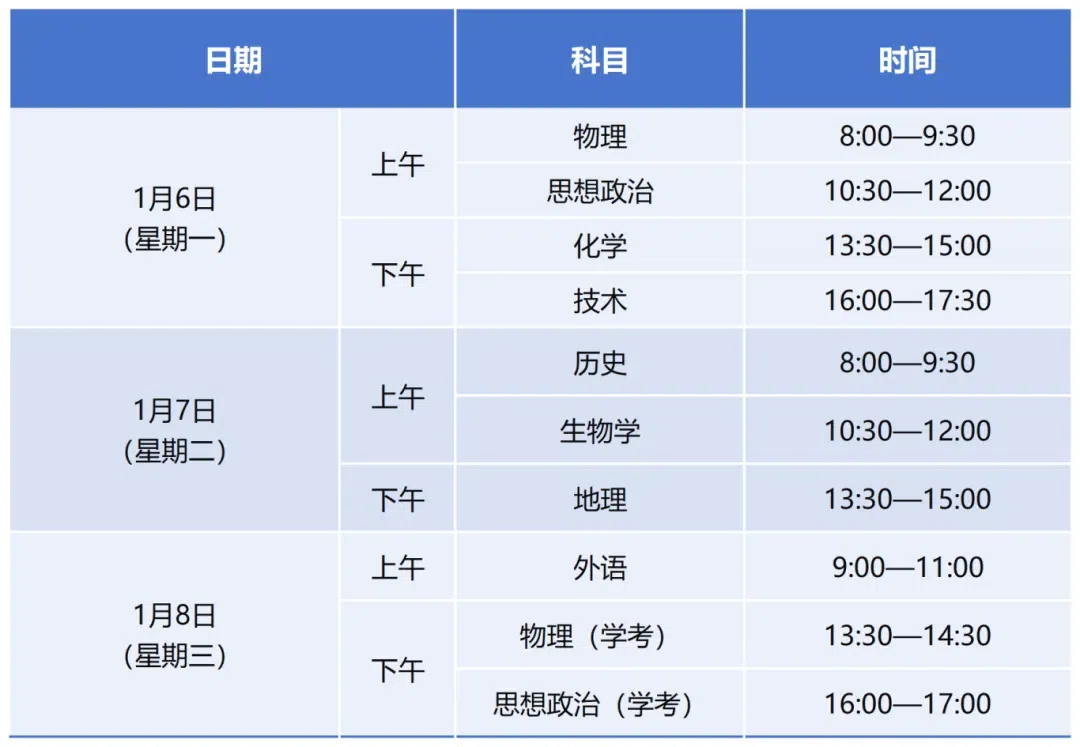 01考试时间及科目