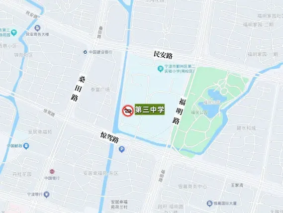 鄞江中学正门两侧及侧道约有60个停车位供接送学生车辆停放,可将车辆停放至鄞江中心小学路面停车位中。