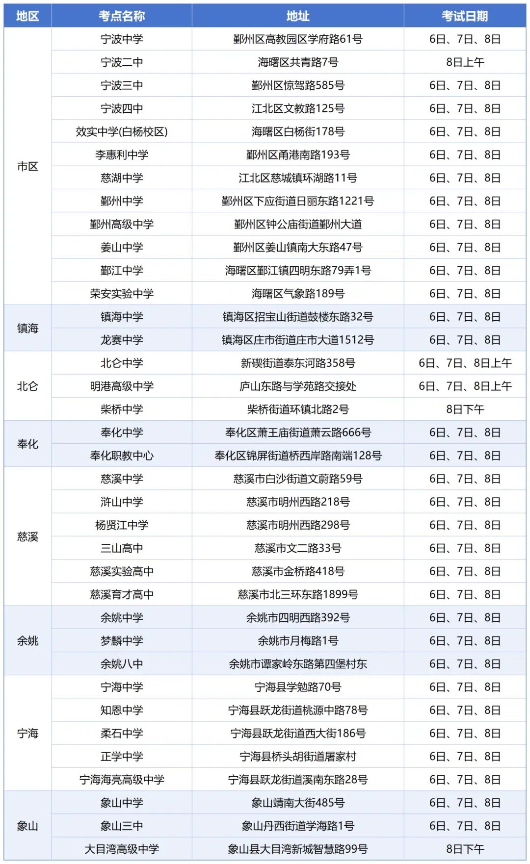 考试地址:鄞州区甬港南路193号