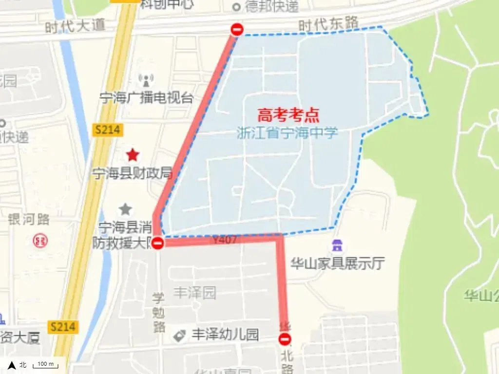 ●华山南路(宁海中学南大门):禁止一切车辆向北行驶。