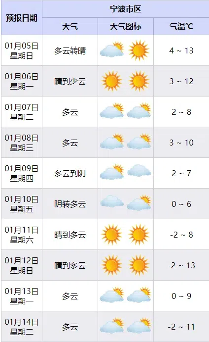 今天依然延续着昨日的晴朗温暖,气温4到13℃,“小寒”不寒。然而温暖也坚持不了多久了,到了下周,冷空气逐渐活跃起来,频繁“打卡”,会把气温整体往下拉一个档次,整体变为偏冷的基调。下周一开始有一股弱冷空气南下,大风降温接踵而至,下周二的最高气温降至8℃上下,随后冷空气不断补充,气温波动式下滑,10日起最低气温0~-2℃有薄冰,山区-3~-5℃有冰冻,最高气温也基本上都在10℃以下,好在雨水还将继续休长假,烦人的湿冷体感并不会上线。