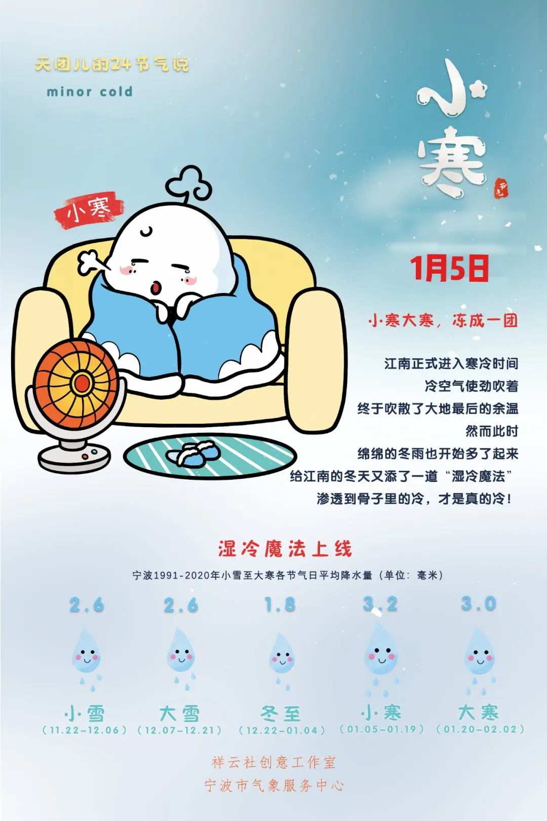 今天我们迎来了“小寒”节气,民谚曰:“小寒时处二三九,天寒地冻冷到抖”。北方地区小寒是最冷的季节,有“小寒胜大寒”之说,但南方则没有到极点。小寒时节,大雁北归,寒梅着花,年节将至。小寒时节,人们还会吃羊肉、麻油鸡、糯米饭温补食物,以增加身体的抵抗力和温暖感。小寒时节是人们开始制作饺子、汤圆、糕点等年货的时候,为新春佳节增添喜庆气氛。