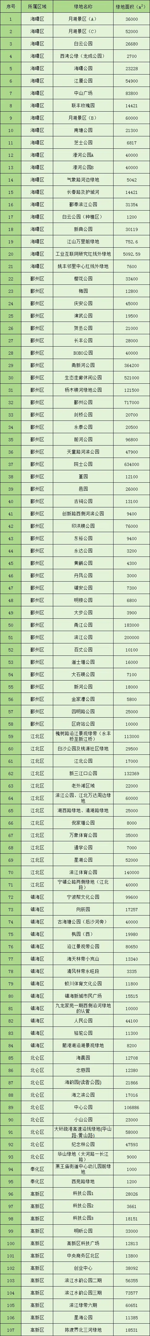 今年宁波城区有超过100个公园绿地可供市民认养认管,其中包含了市民高度关注的月湖景区、江厦公园等处。具体绿地名称如下: