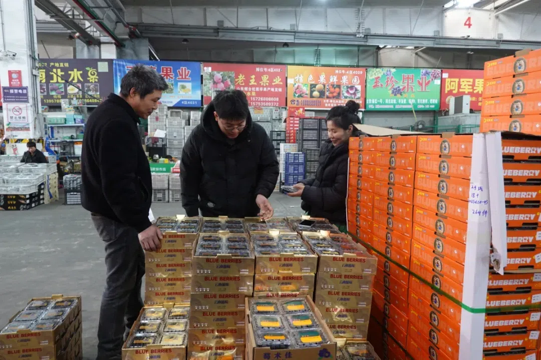 “目前,我们摊位每天能卖掉3000箱左右的云南蓝莓,预计3月中旬能迎来蓝莓销售的小高潮。”蔡侠补充道。