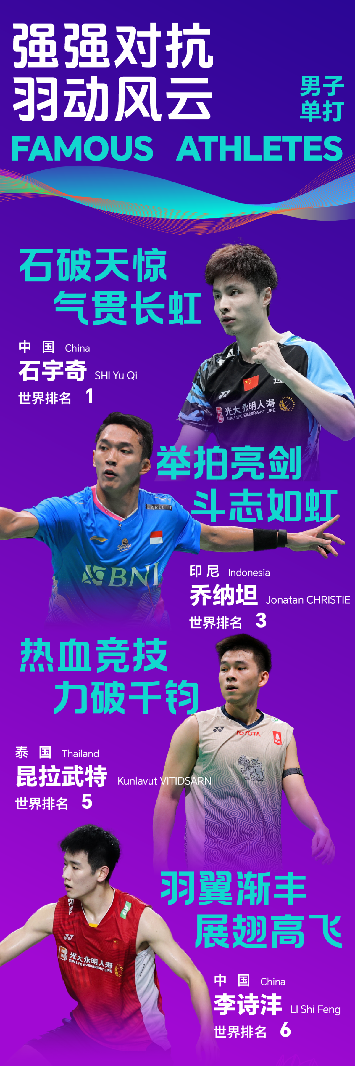 此外,世锦赛男单冠军、世界排名第三的泰国选手昆拉武特,亚运会冠军李诗沣也获得了本届羽毛球亚锦赛的参赛资格。