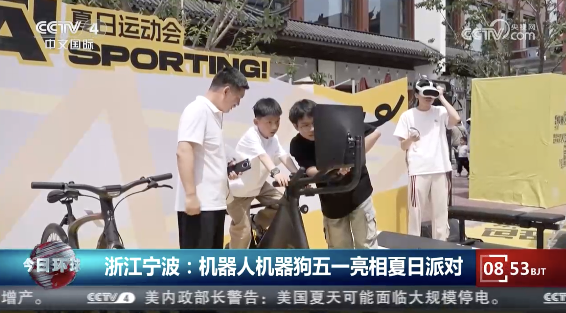 5月5日,央视《中国新闻》《今日环球》栏目播出《浙江宁波:机器人机器狗五一亮相夏日派对》,报道了“五一”期间,一场以AI科技产品为主题的夏日派对在宁波热闹开幕。活动现场,机器人和机器狗的舞蹈表演吸引了众多市民驻足观看。除了表演,还有同声传译眼镜、陪伴机器人等供市民现场体验,让市民直接感受科技对生活的改变。