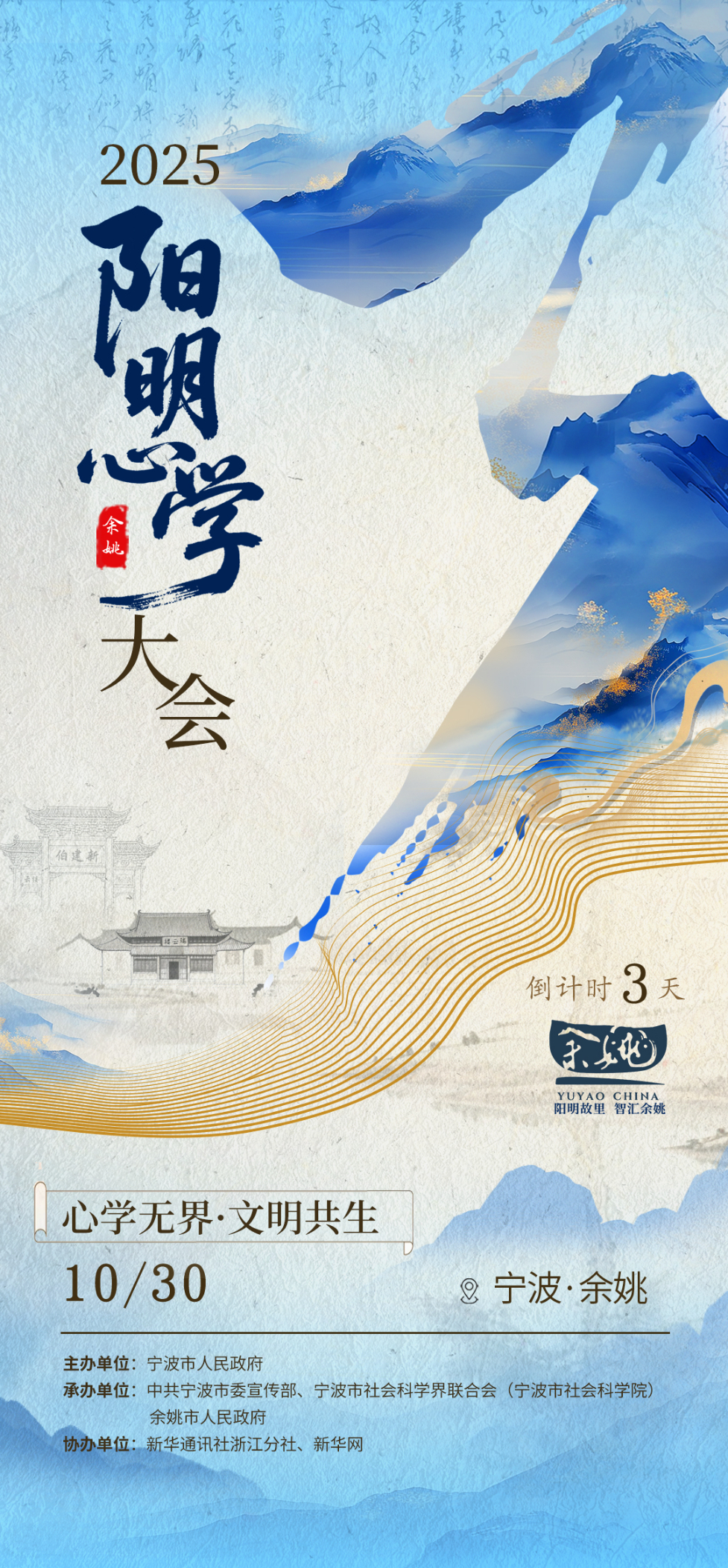 探源阳明心学,融汇古今智慧。10月30日,“2025阳明心学大会”将在浙江宁波余姚市举办。大会以“心学无界·文明共生”为主题,设“2025阳明心学大会”“2025阳明文化中外交流会”“2025中天阁论道——‘阳明心学与当代中国’王德峰专场”三大板块,汇聚国内外学者、王阳明史迹地代表及社会各界人士,共话阳明文化的当代价值与国际传播。
