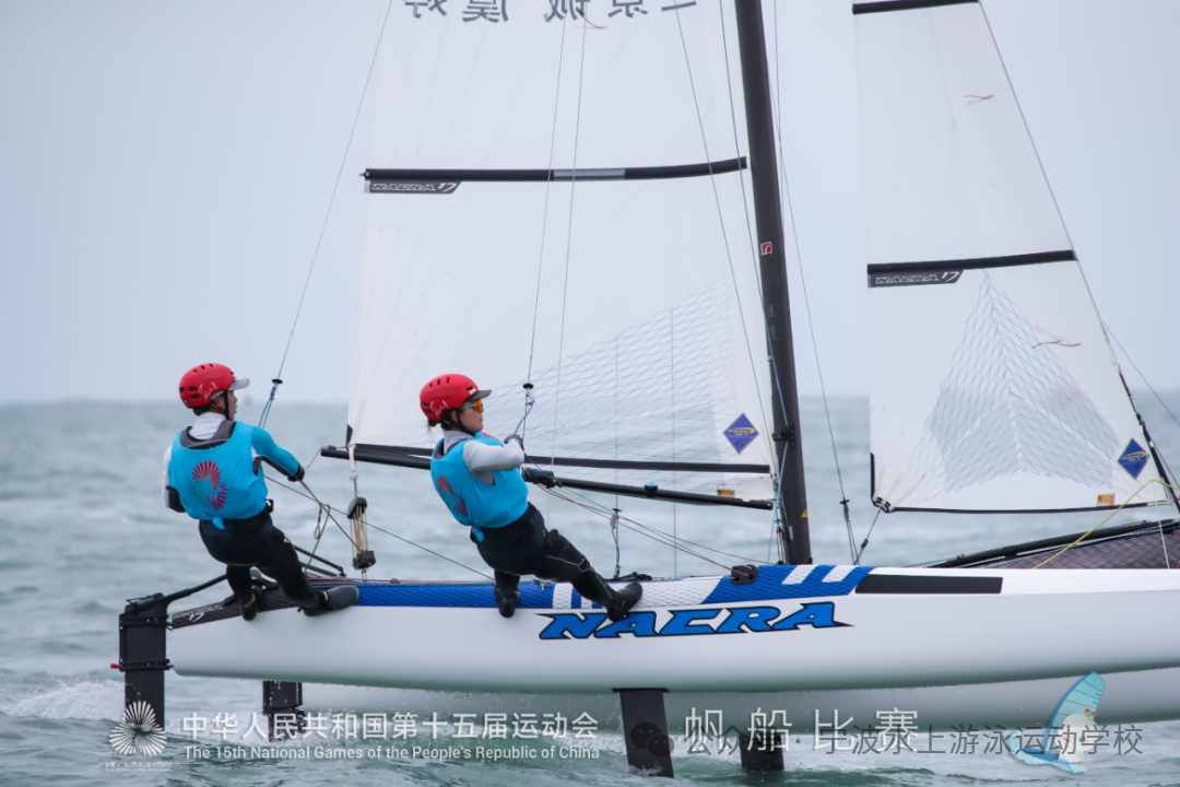 第十五届全国运动会帆船帆板比赛今天下午在广东汕尾红海湾结束帆船项目的比赛,宁波运动员虞婷和搭档兰景铖组合代表浙江队在混合诺卡拉17级帆船比赛中位列第一,为浙江代表团斩获一枚海上项目金牌,这也是宁波运动员在本届全运会竞技项目上获得的首枚金牌!另一位宁波运动员王晶和搭档配合获得了混合470级帆船赛铜牌。