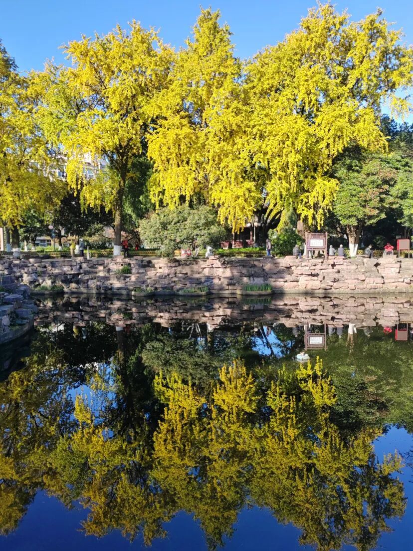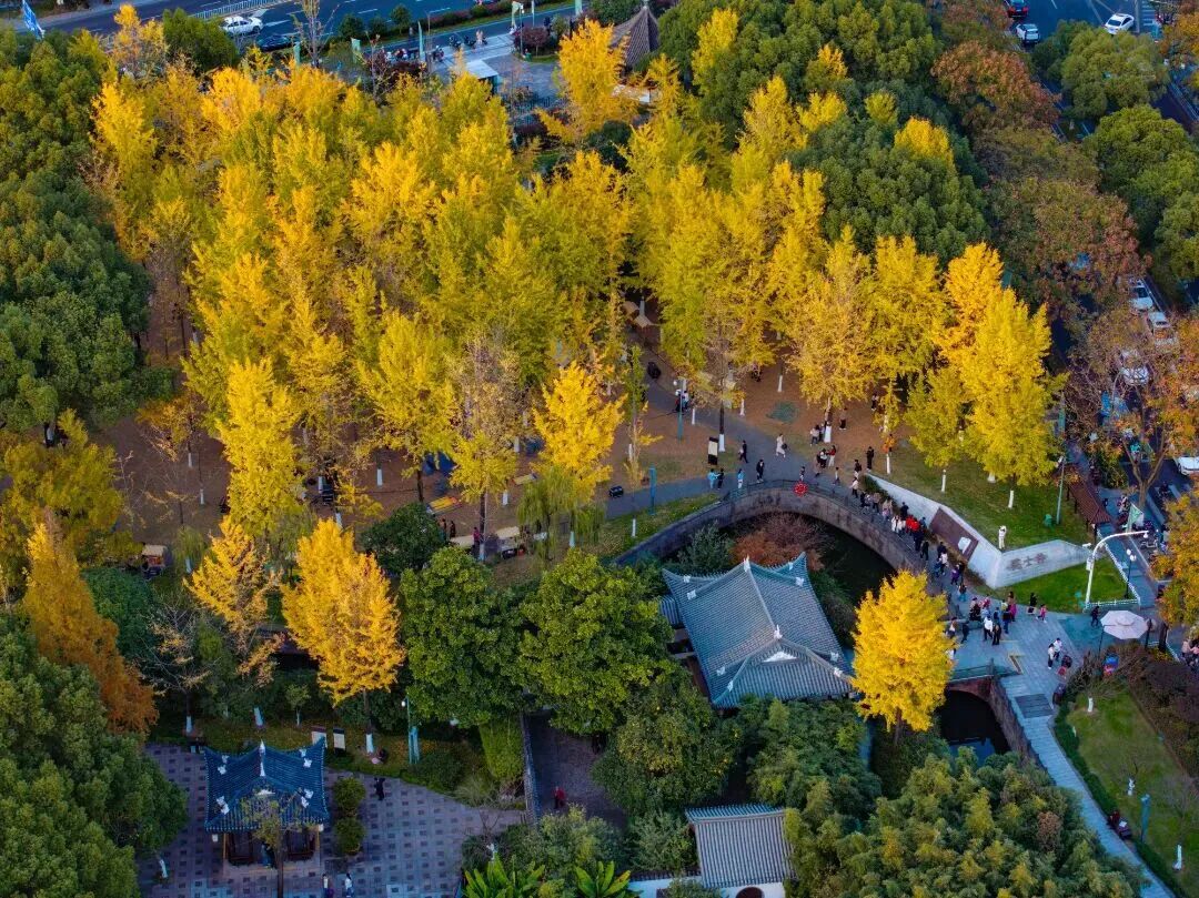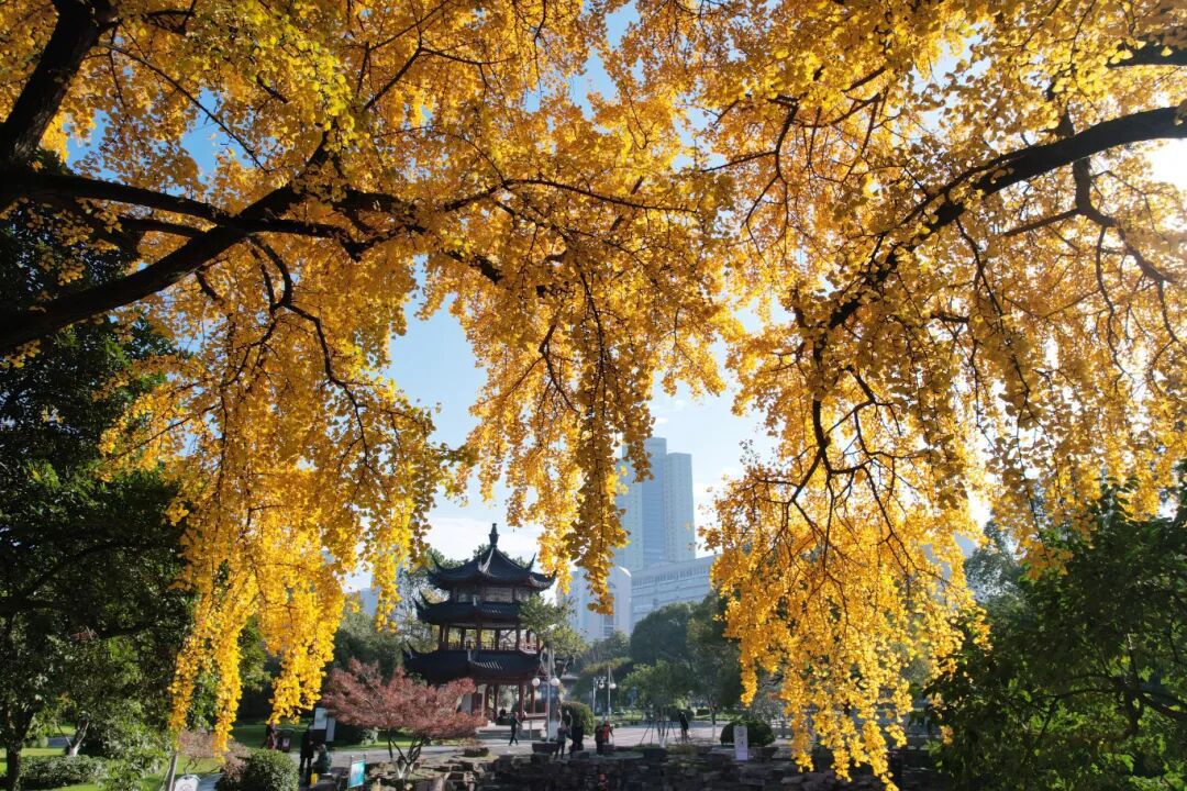▲月湖旁的银杏树。宁波发布特约摄影师 沈国峰/摄