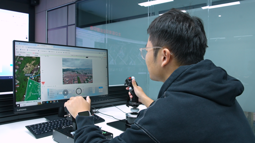 工作人员远程操控无人机航行