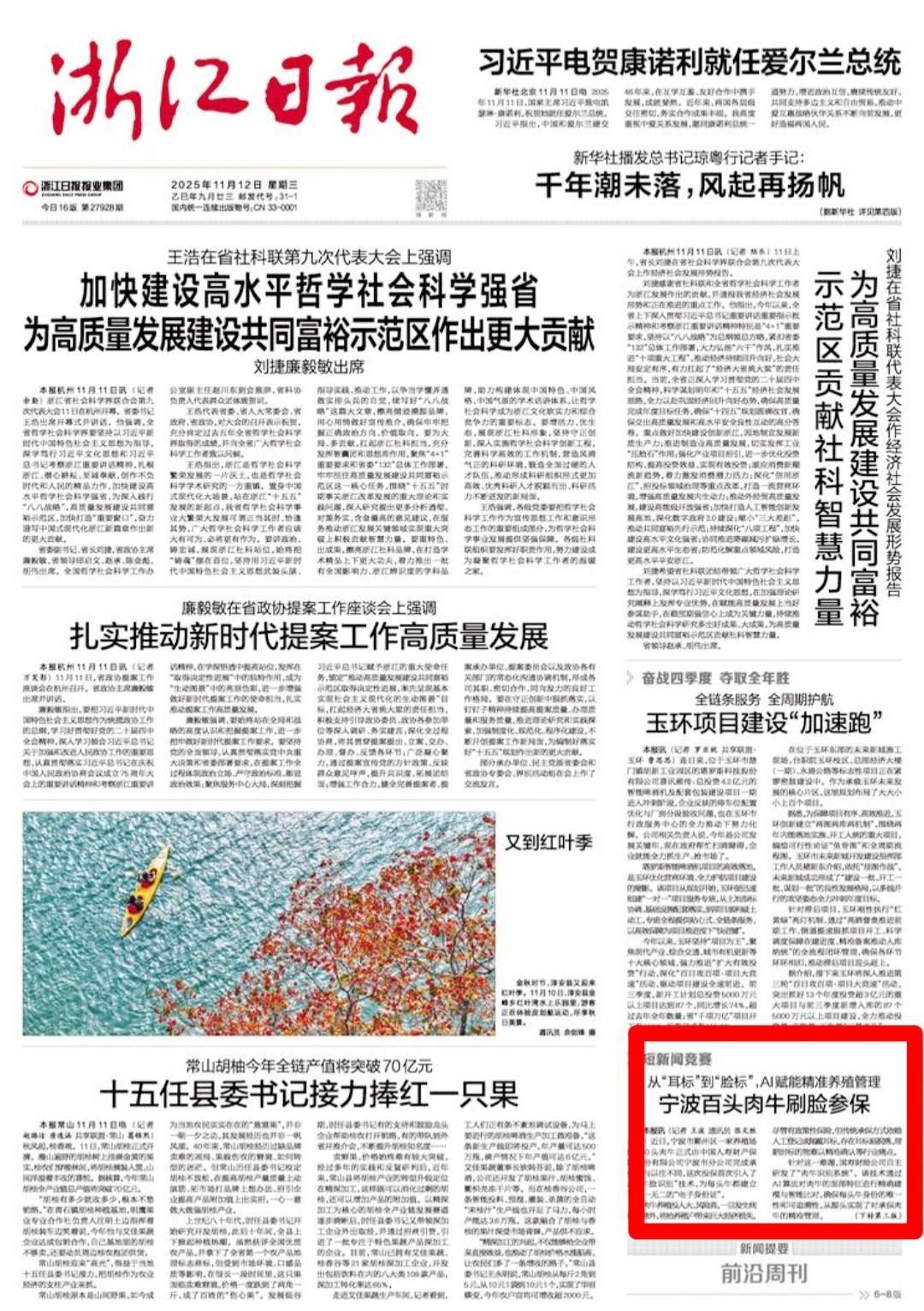 近日,宁波市鄞州区一家养殖场的100头肉牛正式由中国人寿财产保险股份有限公司宁波市分公司完成承保。与以往不同,这次投保首次引入了AI“牛脸识别”技术,为每头牛都建立了独一无二的“电子身份证”。