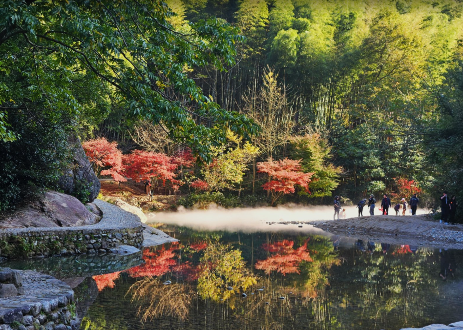11月的四明山国家森林公园,红枫、银杏像打翻的彩色颜料,把山野染得绚烂夺目。漫步林间,看光斑在叶间跳跃,听脚下落叶“沙沙”轻响,深呼吸间全是森林氧吧的清新,每一口都治愈又畅快。