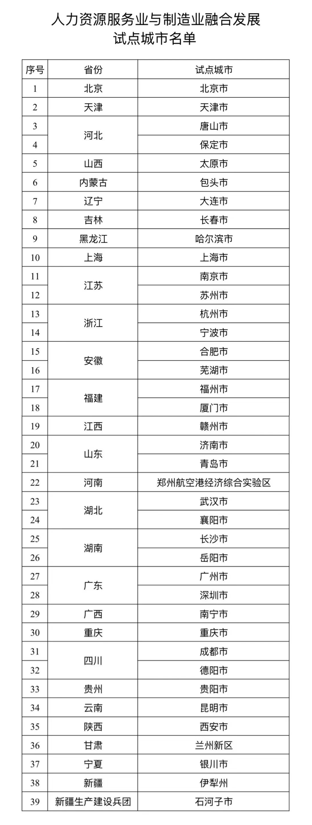 试点城市是试点工作的直接责任主体,要结合国家和区域重大发展战略,把人力资源服务业与制造业融合发展纳入“十五五”经济社会发展规划,统筹谋划推动。