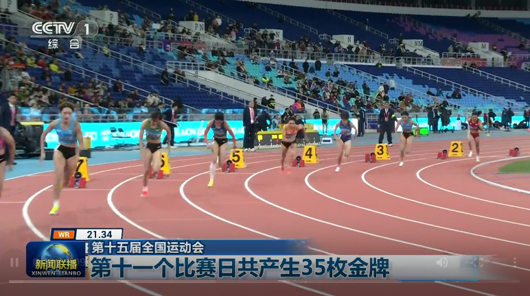 11月20日,央视《新闻联播》栏目播出《第十五届全国运动会 第十一个比赛日共产生35枚金牌》,其中,(视频28秒处)报道了第十五届全国运动会赛事已接近尾声,19日晚的田径赛场共产生9枚金牌,宁波16岁小将陈妤颉勇夺女子200米冠军。