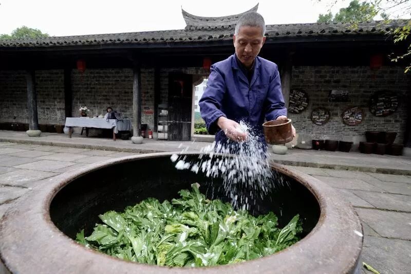 这份偏爱藏着代代相传的生活智慧。民谚说“蔬菜三分粮,咸齑当长羹”,看似不起眼的小菜,经日晒脱水、盐腌入味、按压紧实、缸封发酵的层层嬗变,在寒冬调出鲜爽滋味,尽显物尽其用的生活巧思。