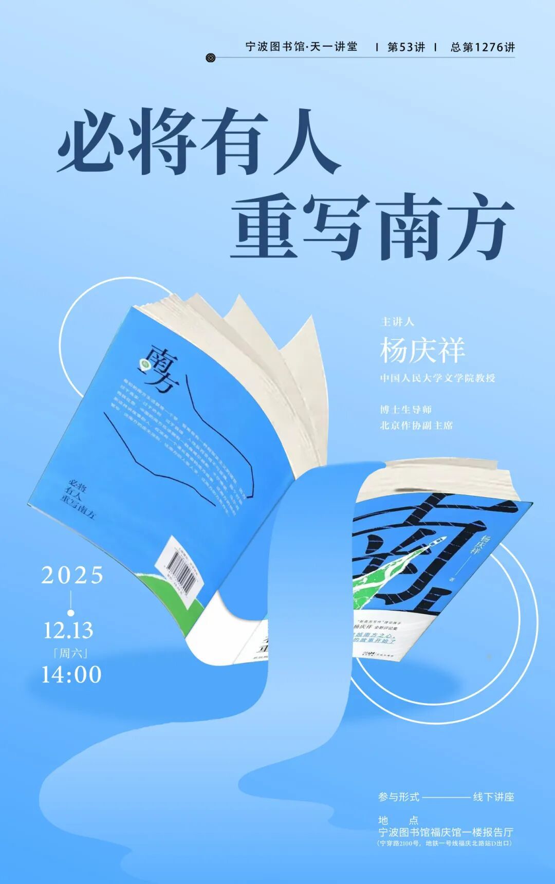 中国人民大学文学院教授杨庆祥,将为甬城读者深度解析“新南方写作”这一前沿文学概念。