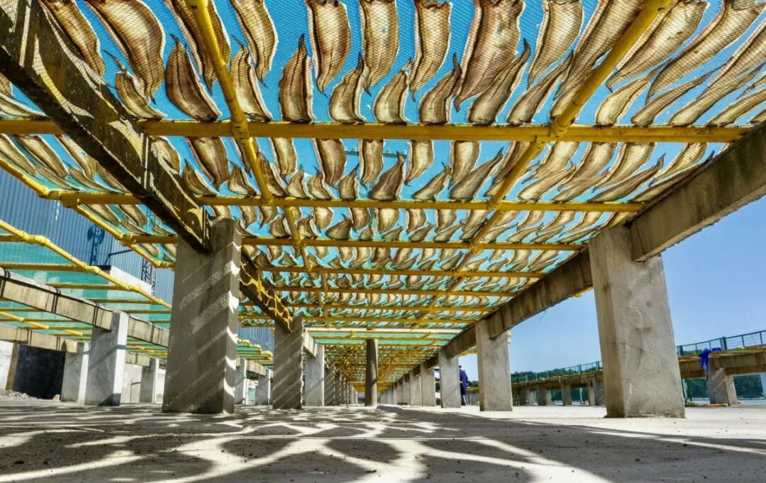 3. 腌好后用清水冲洗掉表面盐分,再次擦干水分,用棉线穿过鱼鳃处,悬挂在通风向阳处。晾晒2-3天,至鱼肉收缩、表面干燥且略带油脂光泽。