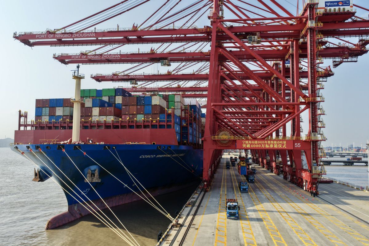 图为12月2日,宁波舟山港年集装箱吞吐量突破4000万标箱。资料图