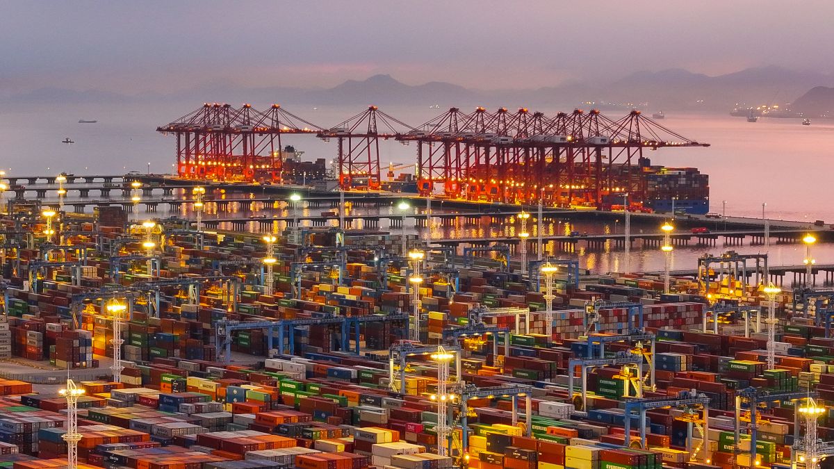 图为五彩缤纷的集装箱把宁波舟山港映衬得如同童话世界一般。蒋晓东/摄