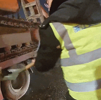 大量附着在挖掘机履带上的泥块被清除