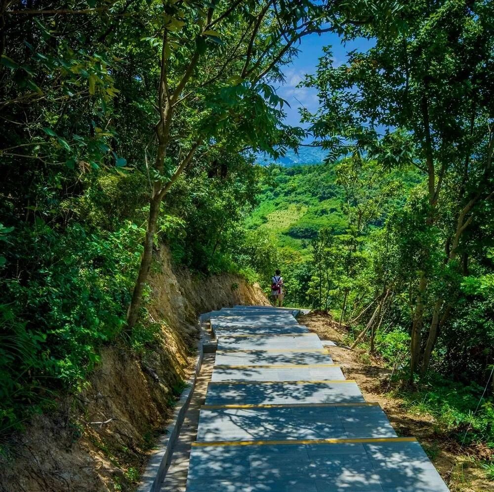 被绿树包裹的登山台阶