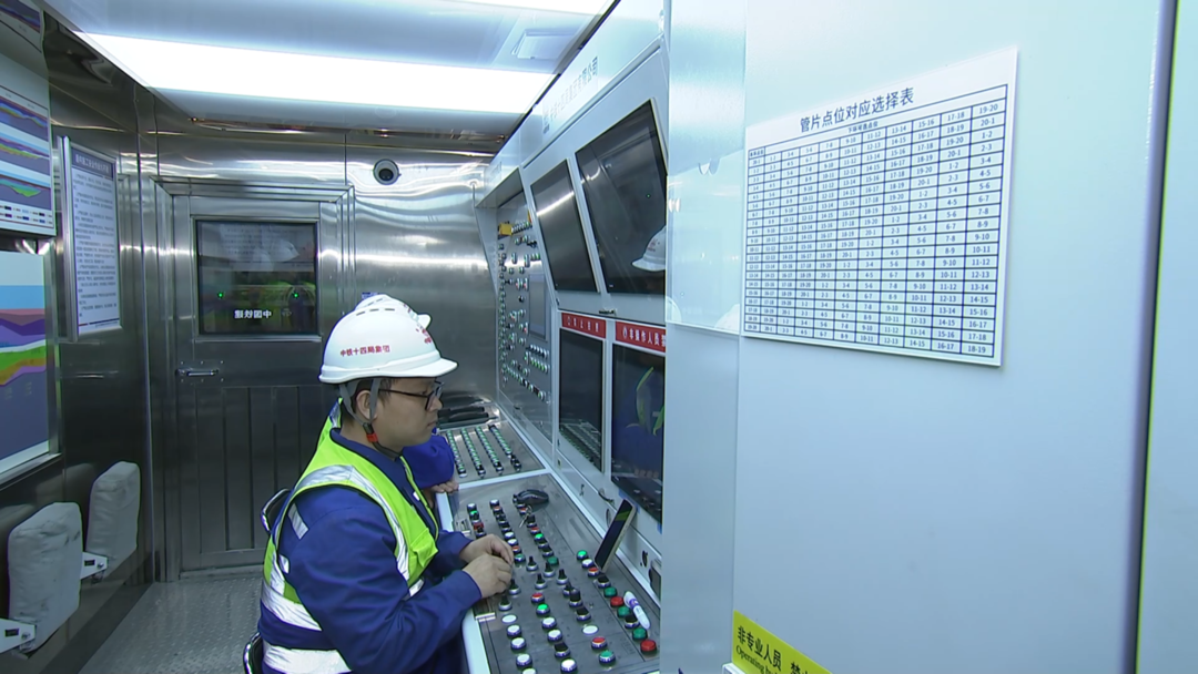 盾构机长正在操作室指挥