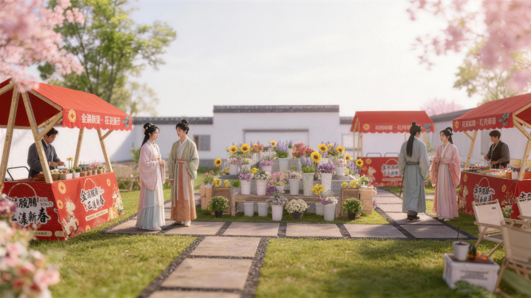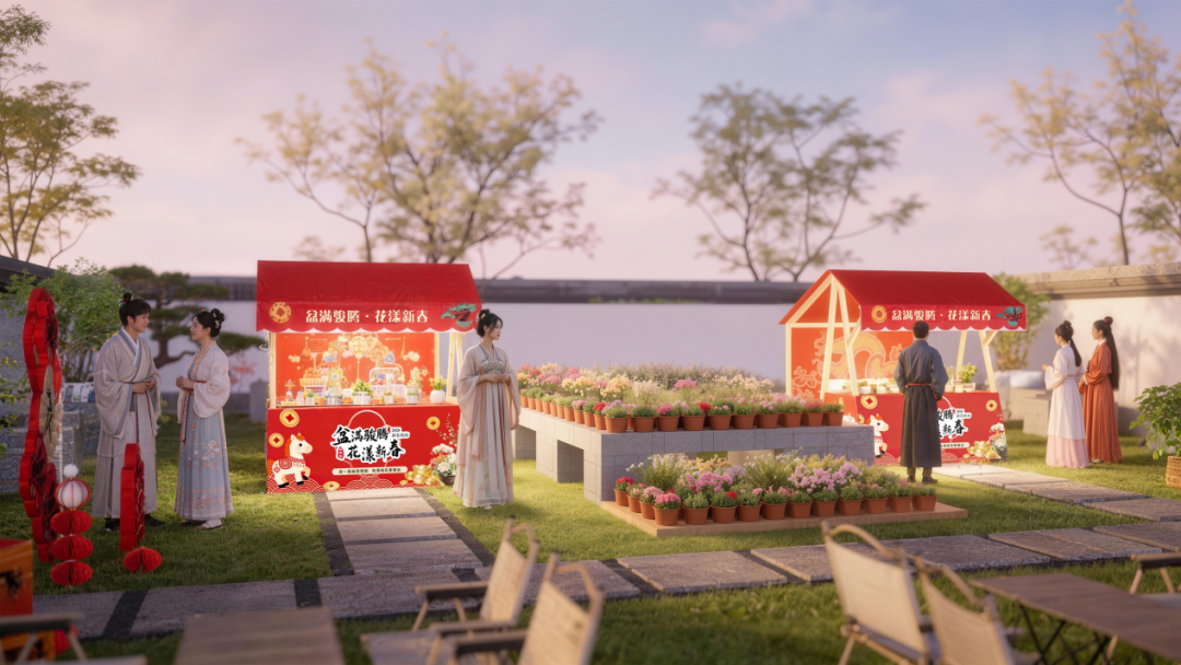 本次花市精心策划打造四大特色主题区域——花朝雅集(年宵花卉展销区)、烟火锦市(美食文创区)、繁花梦工厂(温室精品花卉区)、元气舞台(广场舞台区),全方位解锁新春乐趣。