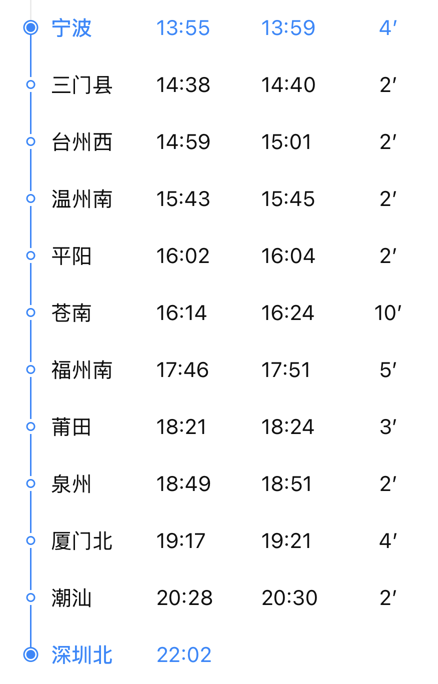 1月26日起,D2293次全程停站由目前17站大幅优化至10站,每天13:59从宁波站出发,在潮汕与深圳北间一站不停,22:02即可到达深圳北站,仅需8小时3分,全程大幅提速41分钟,比两地间每逢周日、一、五、六开行的高铁动卧还快,成为两地间当之无愧的“最快列车”。
