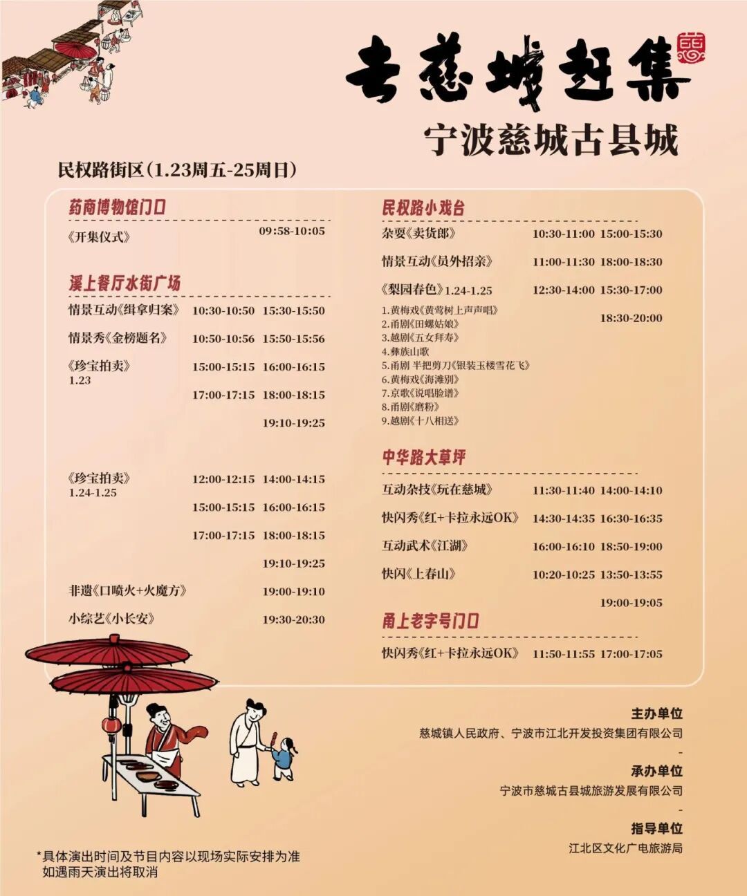 温馨提醒:如遇雨天,节目可能调整/取消,具体以现场为准。