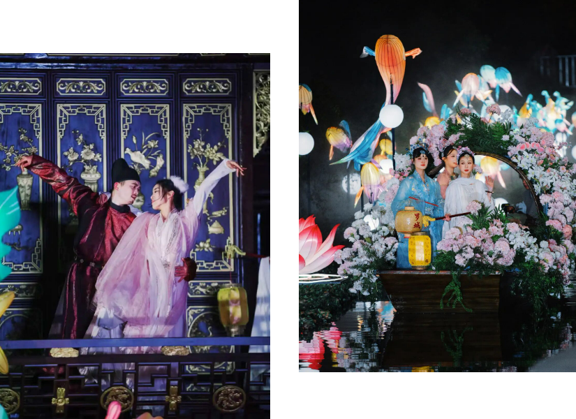 沉浸式体验游船互动,欣赏唐风宴舞的优美风采。