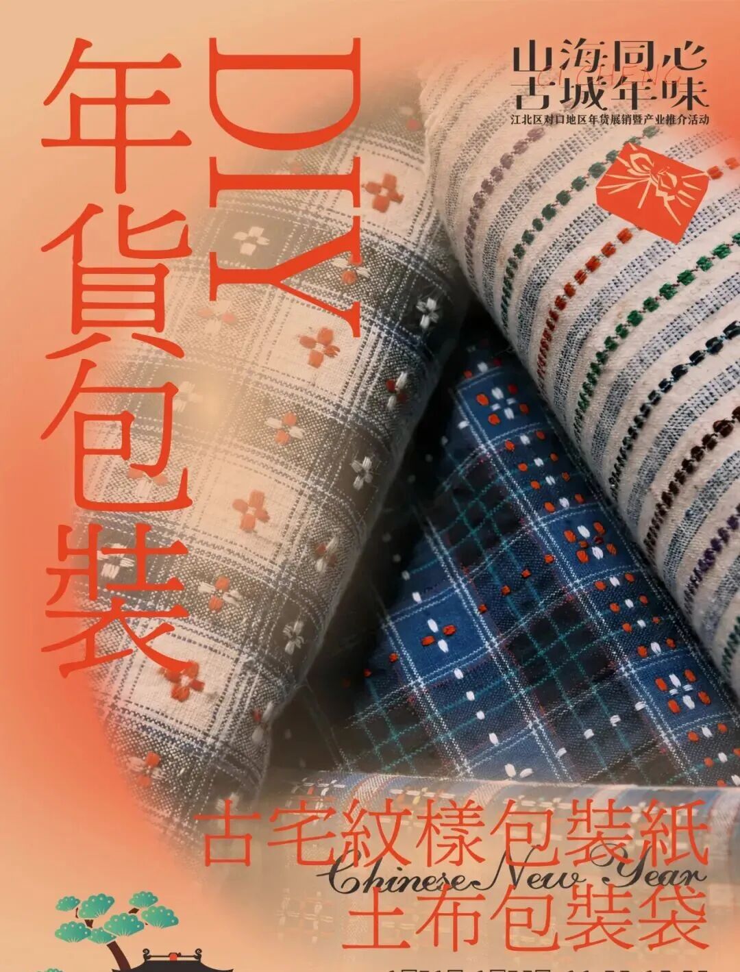 1月25日10:00-21:00,来古城玩年货包装DIY、写春联福字,亲手创作独一无二的新年心意好礼。