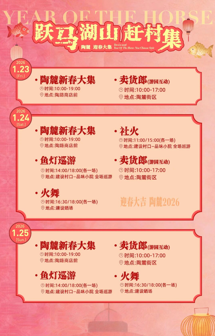 在卖货郎一声声绵长悠远的吆喝声里,重现记忆里的腊月街市,沉浸式体验陶麓新春风味。