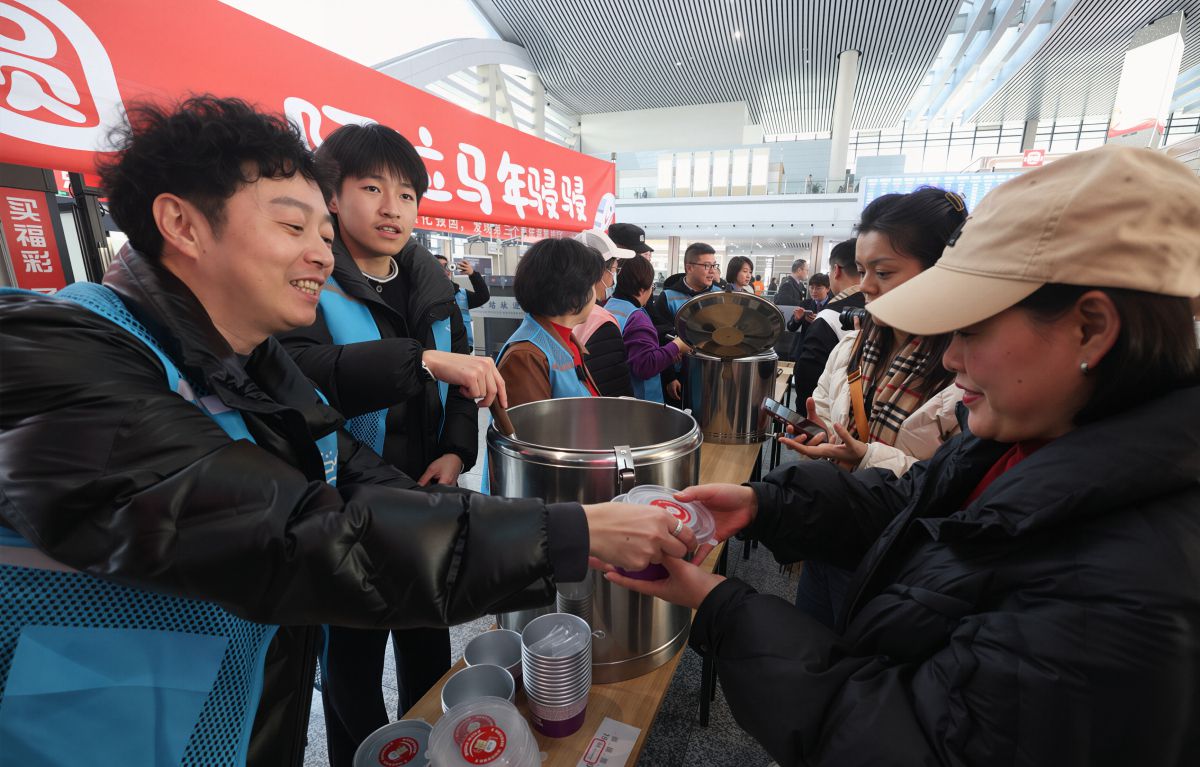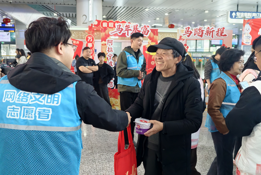 2月12日下午,宁波火车站举办网络大V新春送温暖活动,为旅客送宁波汤圆,传递温情与年味。