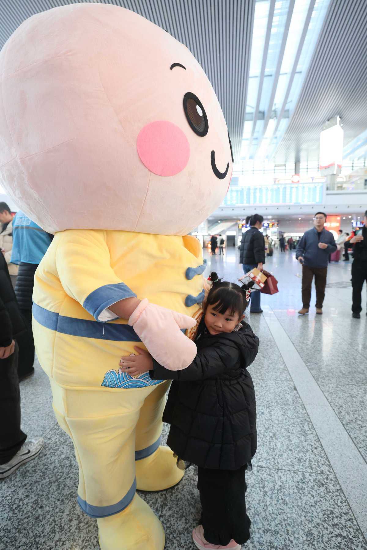 孩子和可爱的“宁波汤圆宝宝”人偶拥抱。陈结生 摄