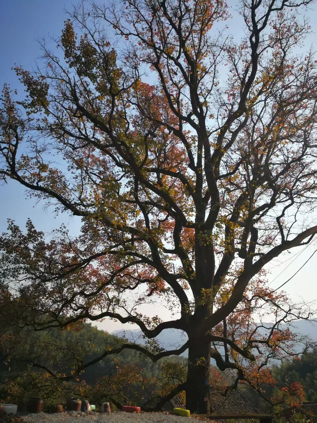 图为村口古枫香树。