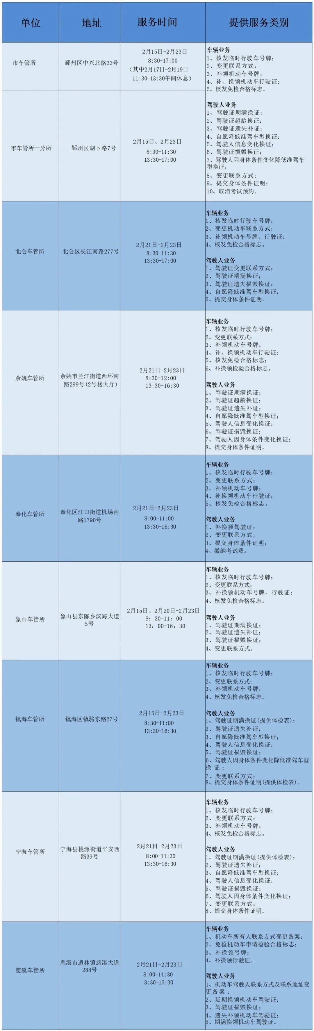 车管所服务时间表