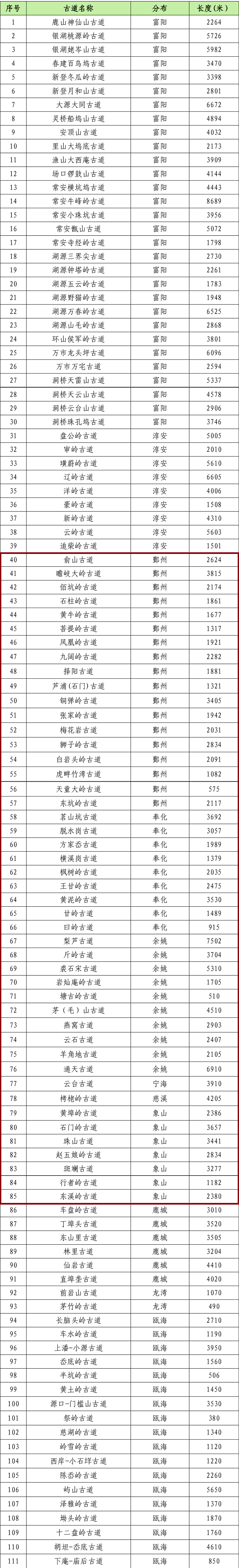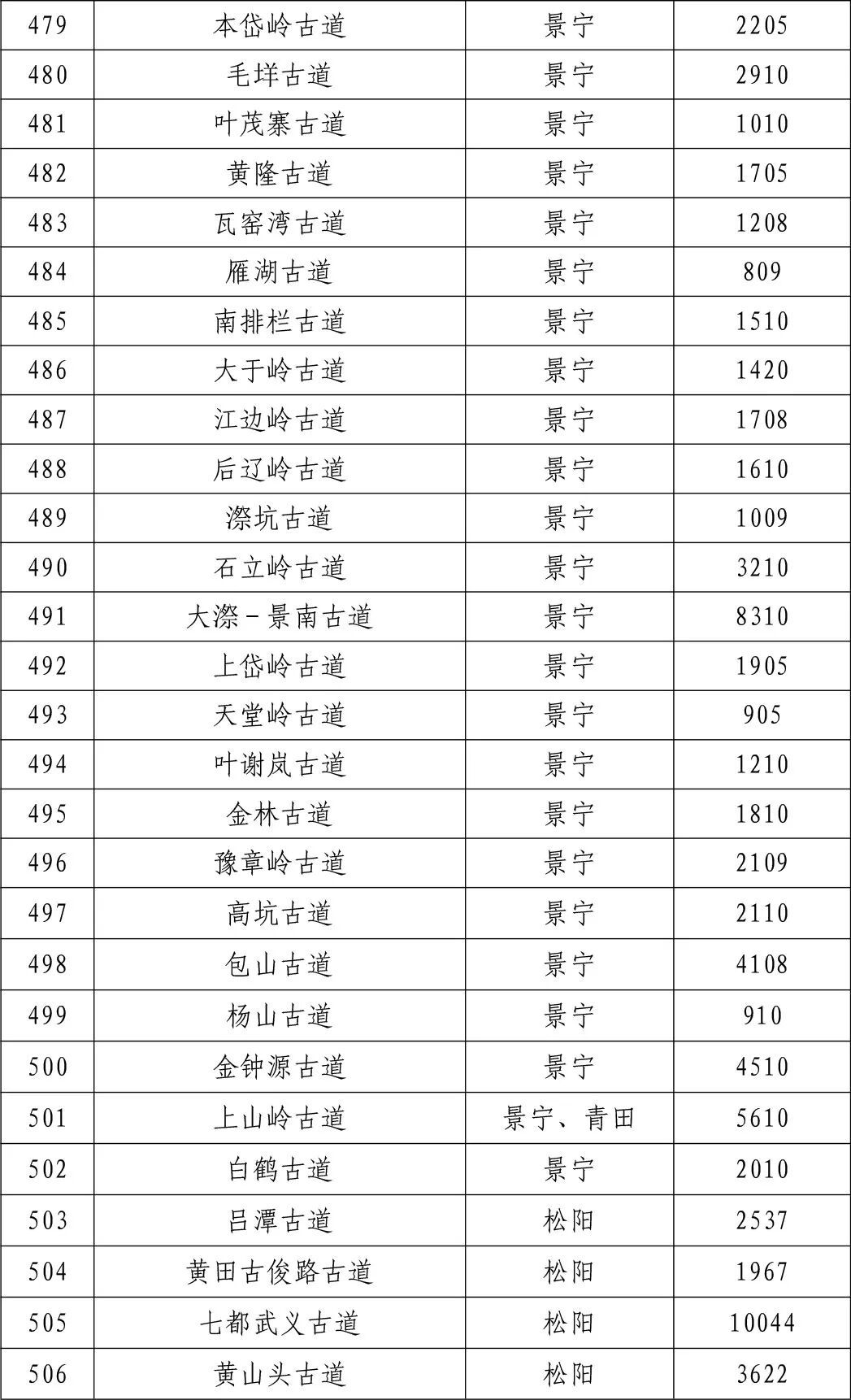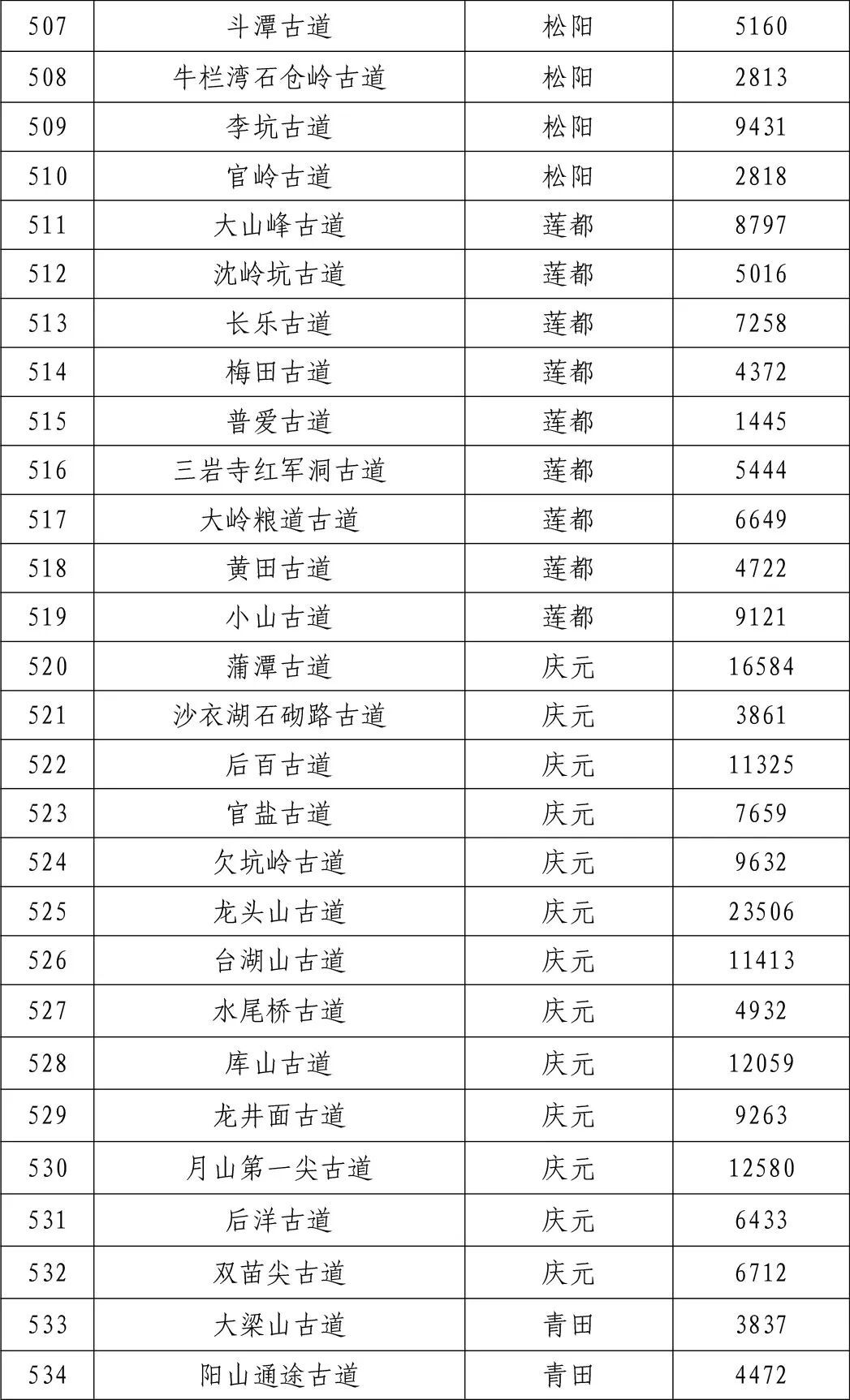 一二三级古道名录的公告》