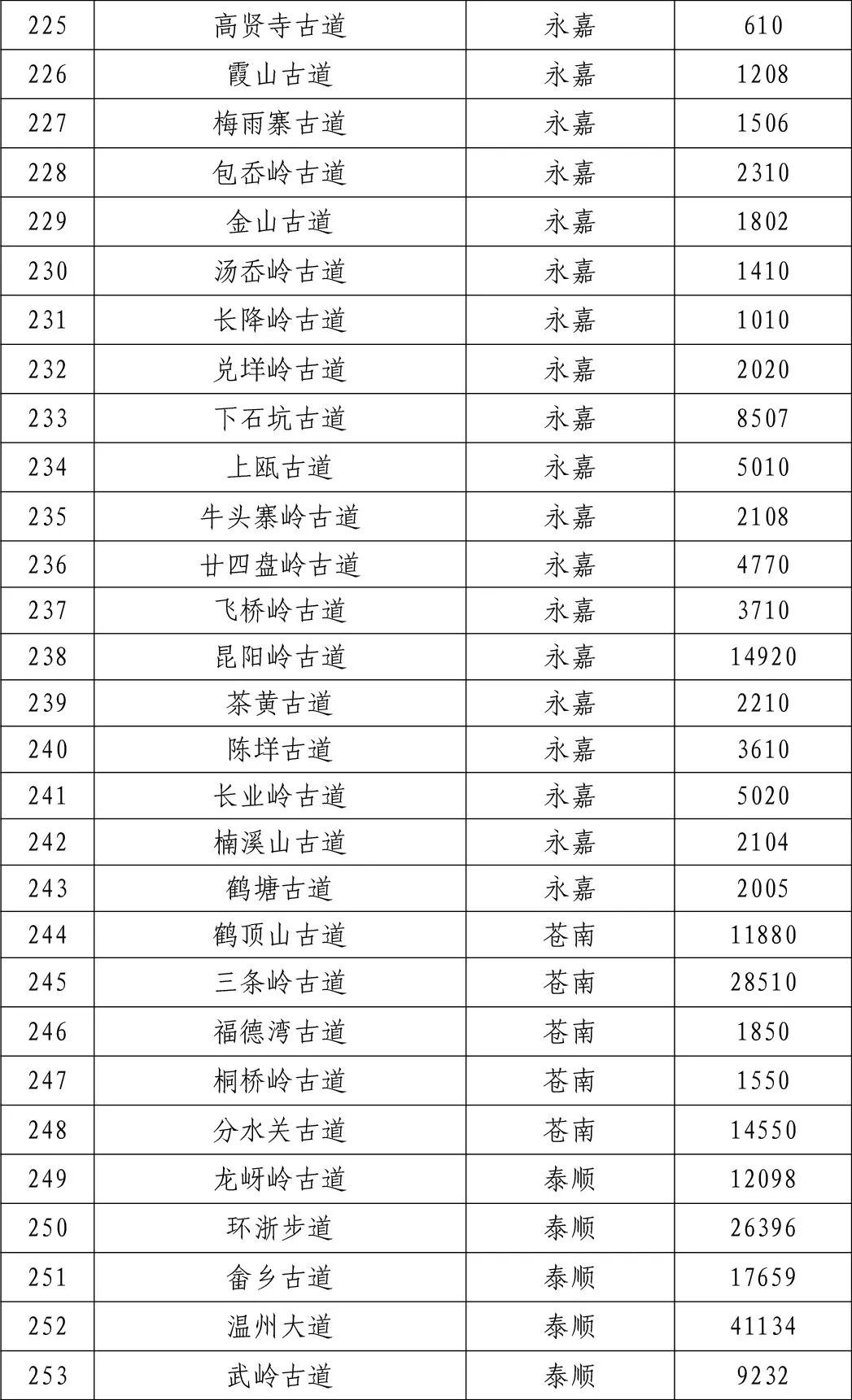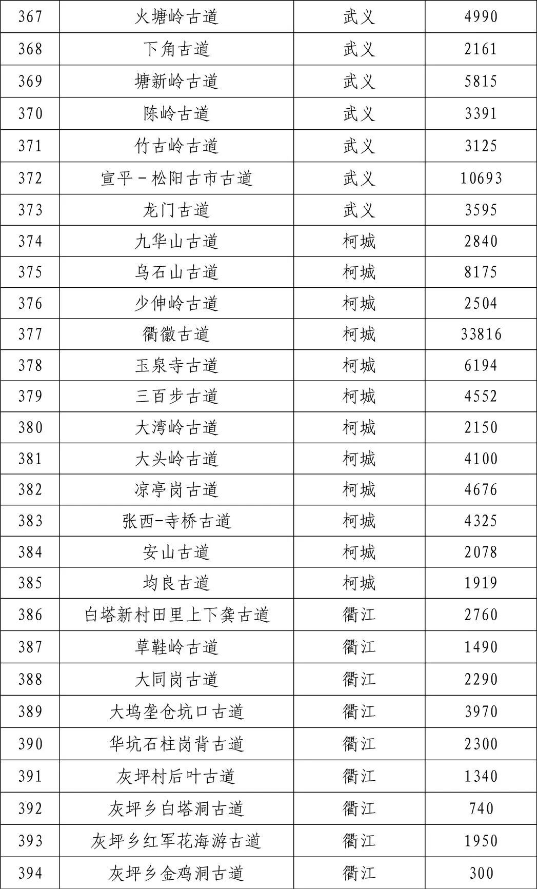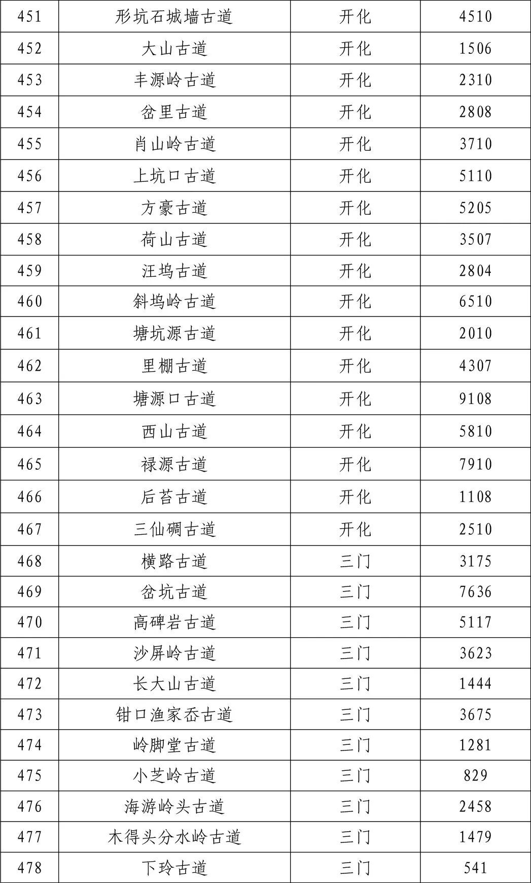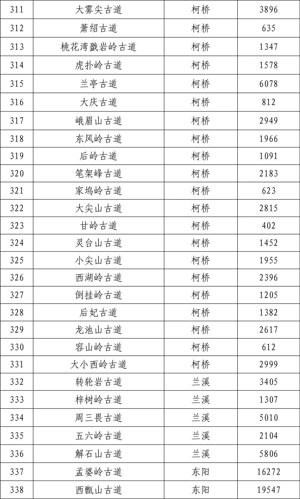 一二三级古道名录的公告》