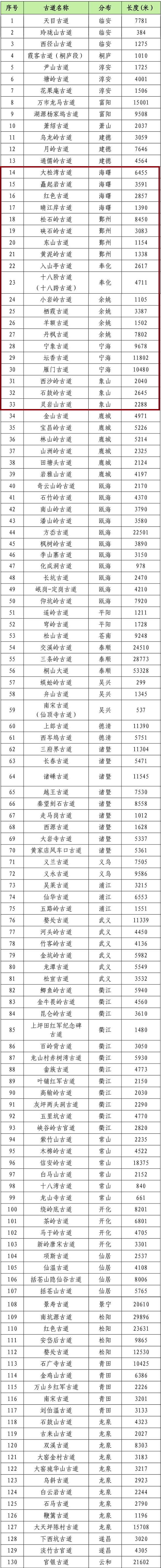 认定浙江省第三批一级古道4条