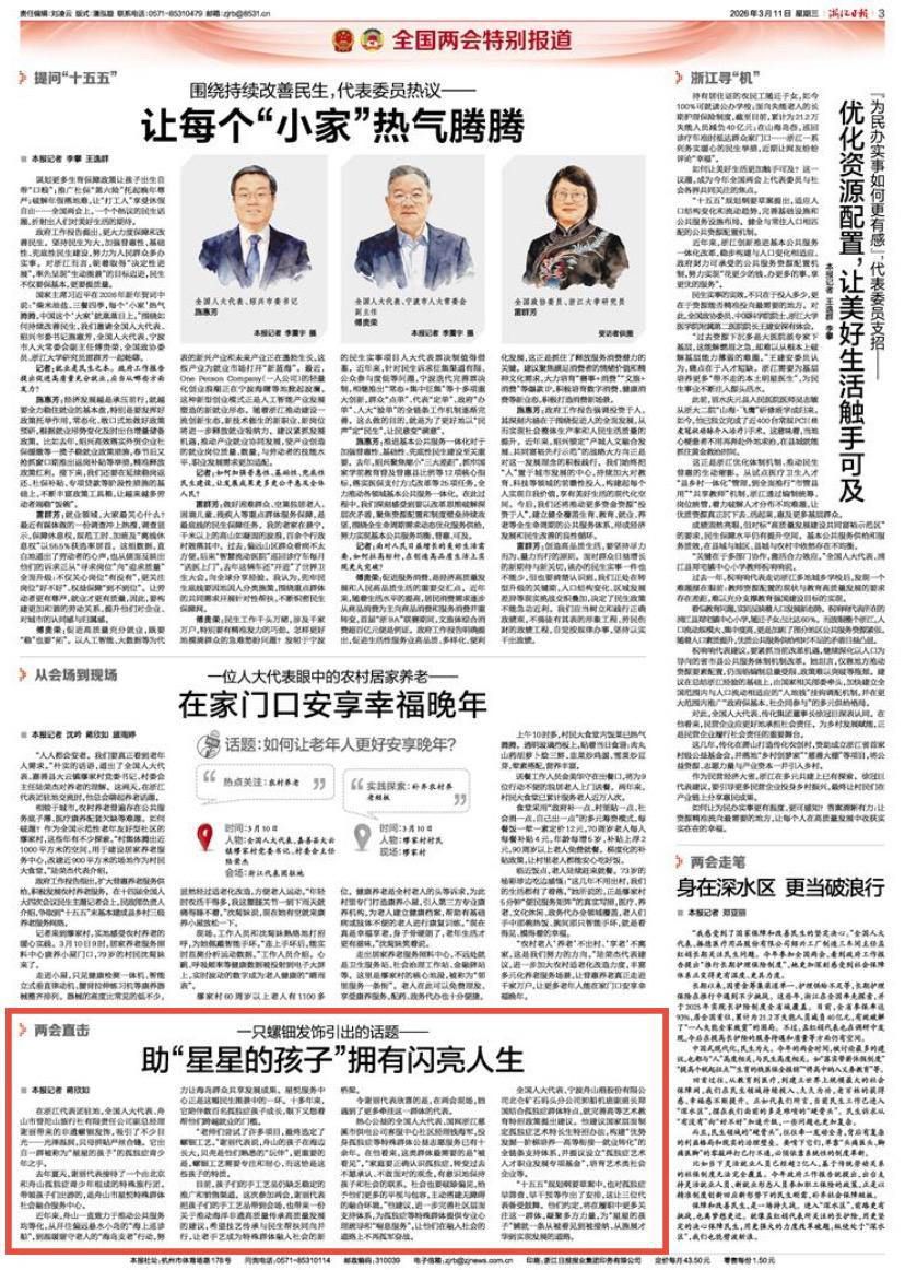 “十五五”规划纲要草案中,也对孤独症早筛查、早干预等作出了安排,这让三位代表备受鼓舞。他们约定,将在履职中更多关注这一群体,凝聚多方力量,为“星星的孩子”铺就一条从被看见到被接纳、从施展才华到实现发展的道路。