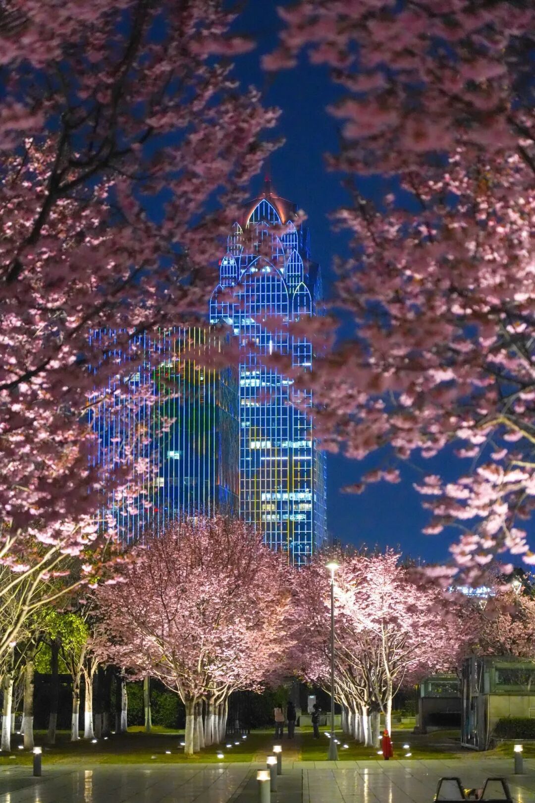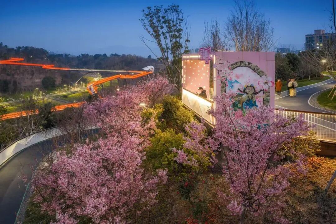 栈道与夜樱交相辉映
