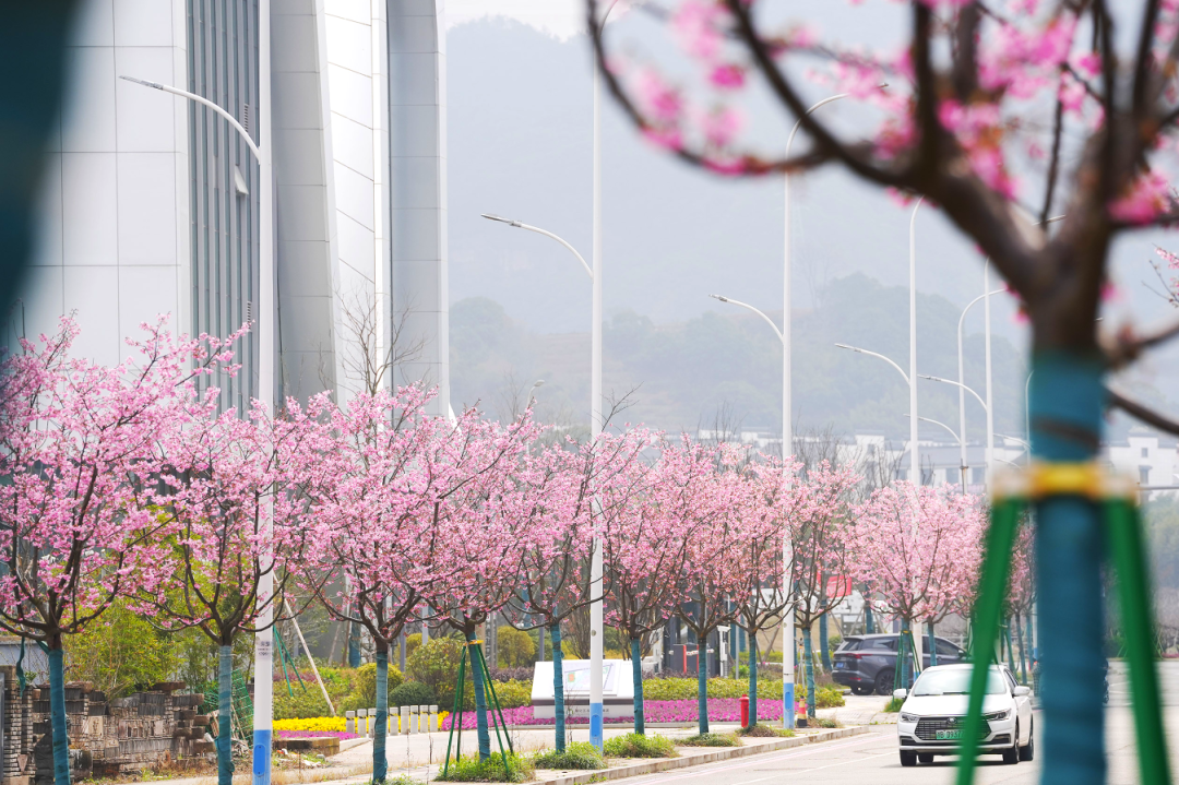 道路两侧的樱花树