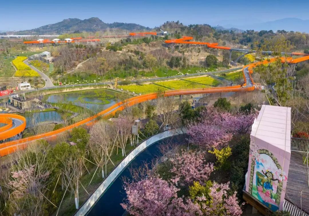 当属园内的橙色架空景观栈道
